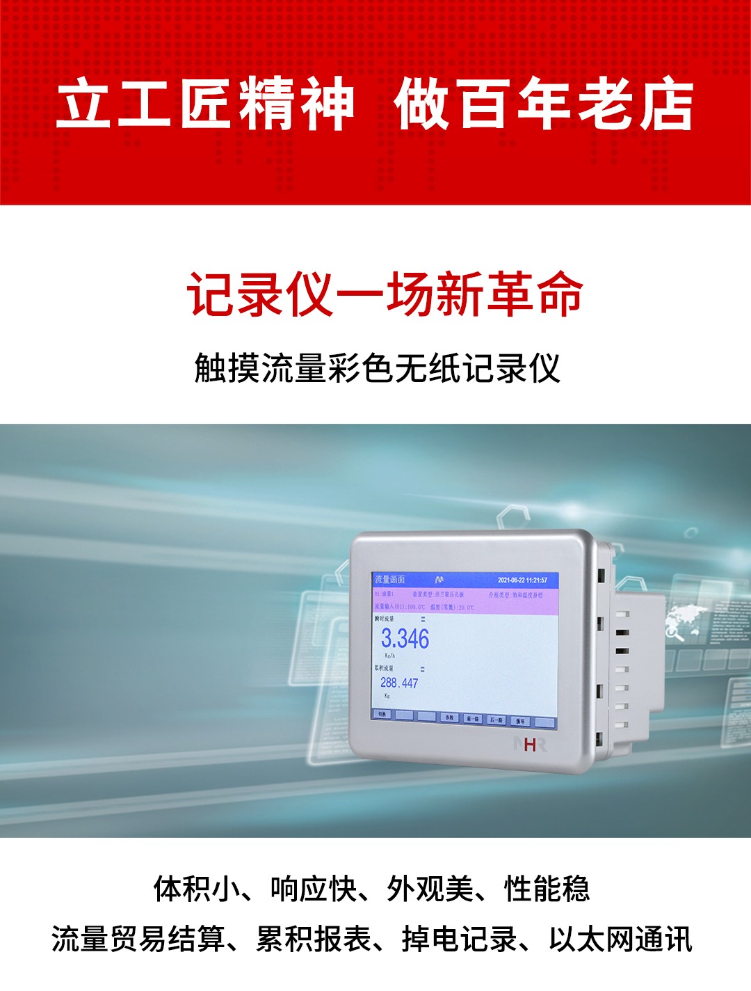 NHR-T560系列觸摸彩色流量無紙記錄儀采用新型大規(guī)模集成電路,對輸入、輸出、電 源、信號采取可靠保護(hù)和強(qiáng)抗干擾設(shè)計(jì)。