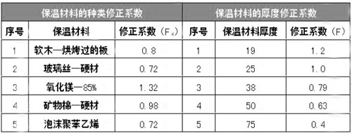 保溫材料的厚度及種類修正系數(shù)