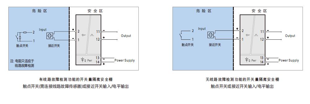 ·可選擇有線路故障檢測(cè)功能的開關(guān)量隔離安全柵和沒(méi)有線路故障檢測(cè)功能