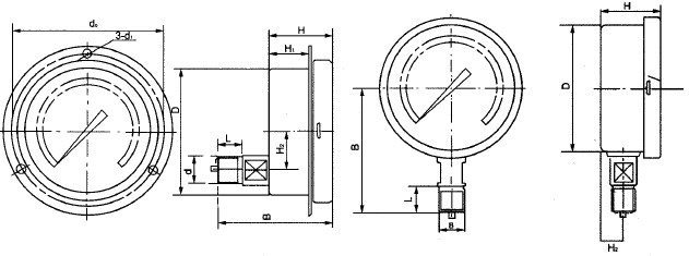 儀表由導(dǎo)壓系統(tǒng)(包括接頭、彈簧管、限流螺釘?shù)?、齒輪傳動(dòng)機(jī)構(gòu)、示數(shù)裝置(指針與度盤)和外殼(包括表殼、表蓋、表玻璃等)所組成。外殼為氣密型結(jié)構(gòu),能有效地保護(hù)內(nèi)部機(jī)件免受環(huán)境影響和污穢侵入。對(duì)于在外殼內(nèi)充液(一般為硅油或甘油)的儀表,能夠抗工作環(huán)境振動(dòng)較劇和減少介質(zhì)壓力的脈動(dòng)影響。