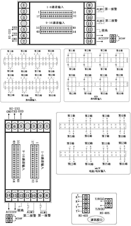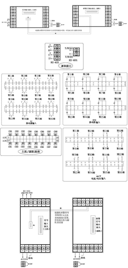 注2:統(tǒng)一控制/報警輸出:即儀表所有通道共用一個(或兩個)報警輸出繼電器,或所有通道共用一組變送控制輸出。統(tǒng)