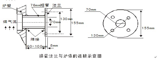 預(yù)先加工好帶法蘭的設(shè)備短接管,孔徑為Φ76,長(zhǎng)度約為400mm。按要求選好取樣位置(爐壁或管道),開一個(gè)Φ76 的孔,將短接水平焊接到爐壁上,焊接時(shí)要保證焊接處不漏氣。把檢測(cè)器插入短接管中,接管法蘭與檢測(cè)器法蘭之間墊上2—4mm 厚的石棉墊,旋緊4 個(gè)螺栓,使其不漏氣即可。