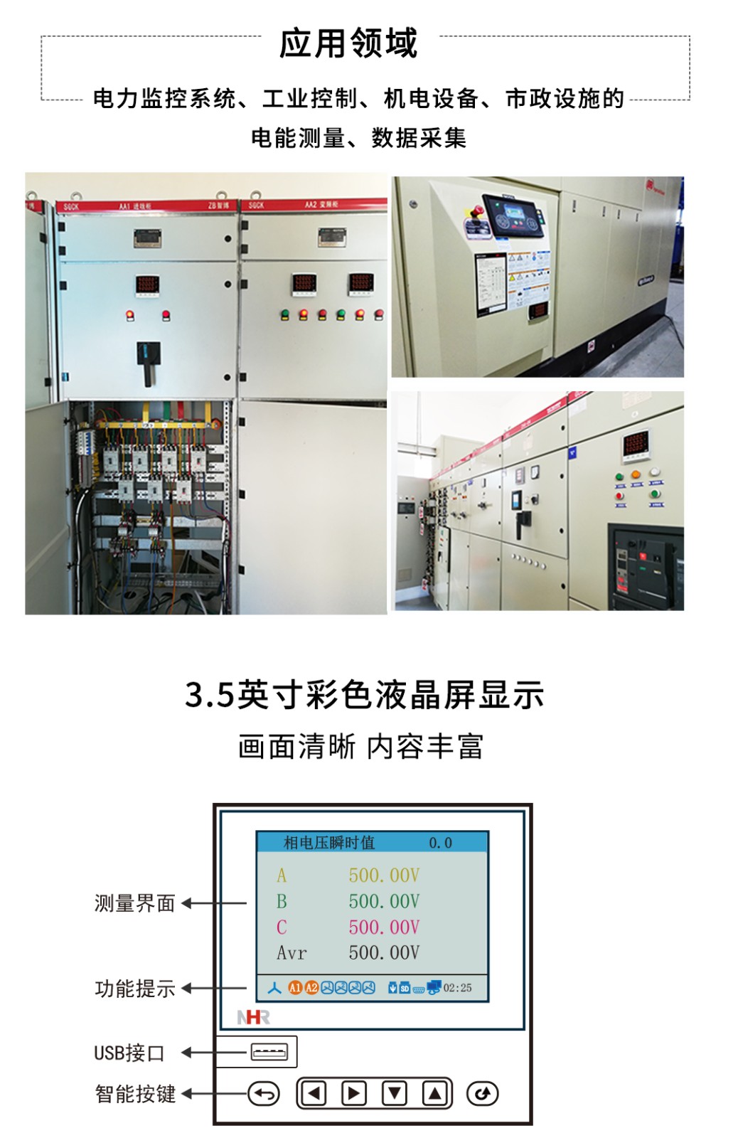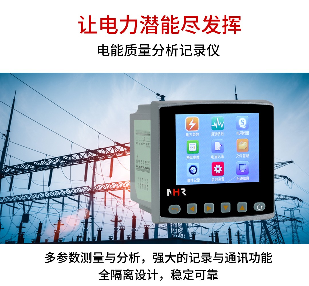 NHR-3900系列電能質(zhì)量分析記錄儀采用新進(jìn)的集成電路及數(shù)字采樣技術(shù),對三相電氣線路中的交流電流/電壓、 有功功率、無功功率、視在功率、功率因數(shù)、工頻周波、諧波、有功電能、無功電能、四象限電能、波峰系數(shù) 及不平衡度等進(jìn)行實(shí)時測量顯示與在線分析。