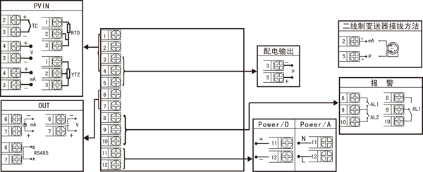 | X 0 1 2 3 4 5 D1 | 無輸出 4-20mA(RL≤600Ω) 1-5V(RL≥250KΩ) 0-10mA(RL≤1.2Ω) 0-5V(RL≥250KΩ) 0-20mA(RL≤600Ω) 0-10V(RL≥4KΩ) RS-485通迅接口(Modbus) | ||
