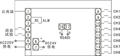 | A | 八回路高亮度LED平面板顯示(燈光式) | A B C D | 接點(diǎn)式閉路報(bào)警輸入 接點(diǎn)式開(kāi)路報(bào)警輸入 標(biāo)準(zhǔn)TTL電平輸入 特殊要求 |