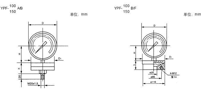 | YPF-100B YPF-100B-F | 0~1.6;0~2.5;0~4;0~6;0~10;0~16;0~25;0~40; -1.6~0;-2.5~0;-4~0;-6~0;-10~0;-16~0;-25~0;-40~0;-0.8~0.8;-1.2~1.2;-2~2;-3~3;-5~5;-8~8;-12~12;-20~20KPa | φ160 |