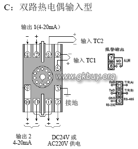 SWP-202TC雙路熱電偶溫度變送器接線圖