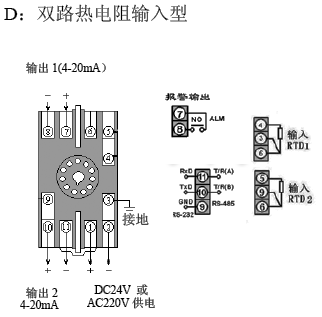 SWP-202TR雙路熱電阻溫度變送器接線圖
