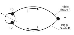 鎧裝熱電偶的工作原理與一般工業(yè)熱電偶一樣,基于Seeback(塞貝克)效應(yīng),即:如果由兩種不同成分的均質(zhì)導(dǎo)體(熱電極)組成閉合回路,當(dāng)兩端存在溫度梯度時(shí),回路中就有電流通過,那未兩端之間就存在Seeback電勢-熱電勢(如下圖所示)