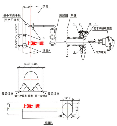 刀刃式、屏蔽刀刃式鎧裝熱電偶主要用于石化、電力、冶金、機(jī)械和食品工業(yè)中,加熱爐的爐壁及爐管溫度測(cè)量。它采用定位卡,將測(cè)量端的刀刃形熱電偶固定在爐壁等部位,通過測(cè)量端把感受到的溫度轉(zhuǎn)換成熱電勢(shì)信號(hào),送