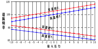 當加有靜壓(工作壓力)時,兩形狀、尺寸、材質(zhì)完全一致的諧振梁形變相同, 故頻率變化也一致,故偏差自動清除(公式和圖類似溫度影響)。