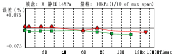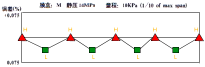 接液膜片與膜盒本體采用獨創(chuàng)的波紋加工技術(shù),使外部壓力增大到某一數(shù)值時, 接液膜片能與本體完全接觸,硅油傳遞給傳感器的壓力不再隨外力的增加而增 加,從而達到對傳感器的保護作用。(圖4)、(圖5)所示為EJA過壓特性。