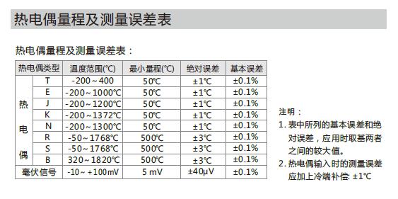 標(biāo)準(zhǔn)精度:±0.1%(參見熱電偶量程及測(cè)量誤差表)
