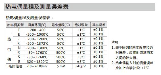 標(biāo)準(zhǔn)精度:±0.1%(參見熱電偶量程及測(cè)量誤差表)