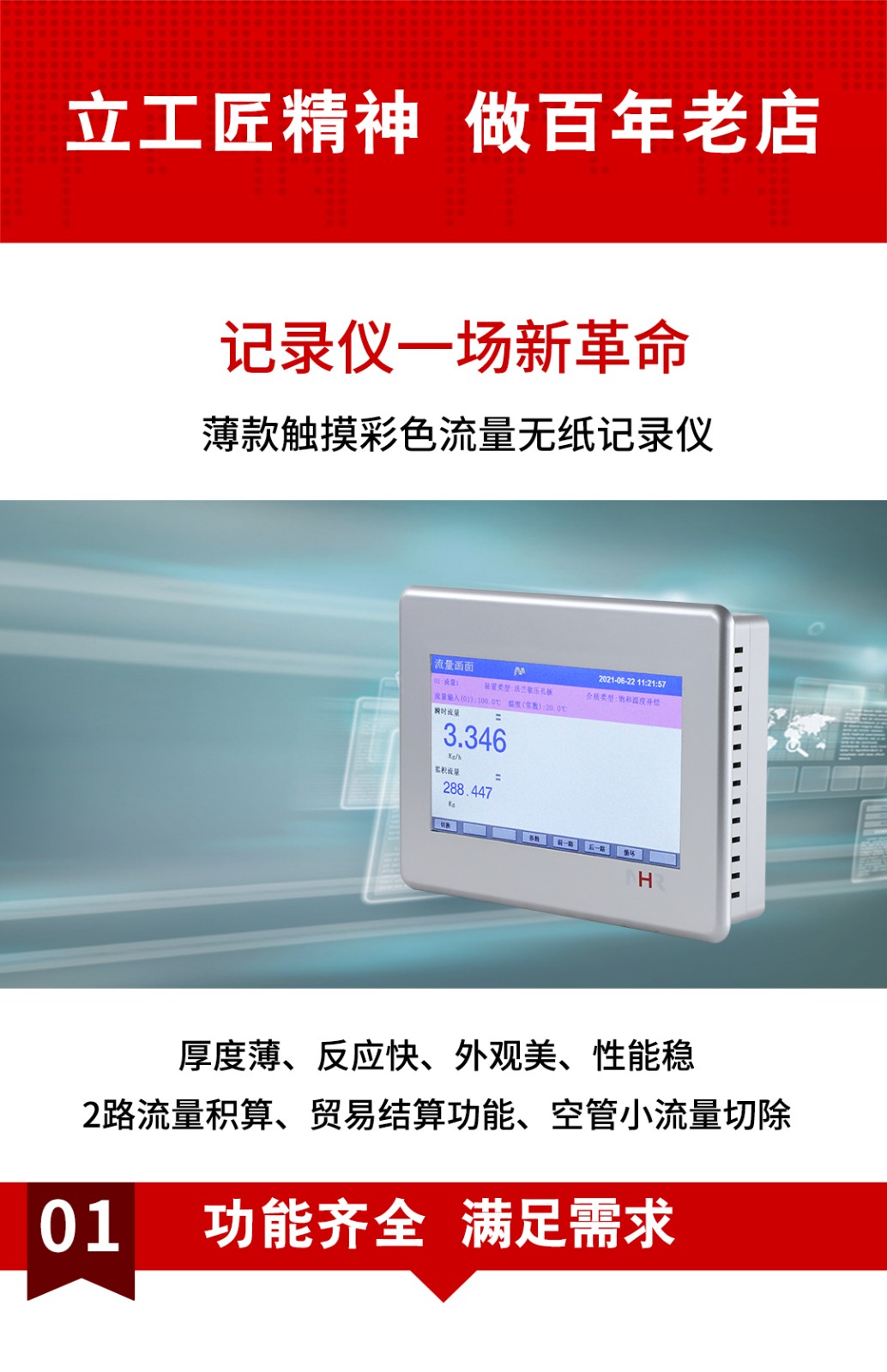 NHR-T760系列觸摸超薄流量無紙記錄儀采用新型大規(guī)模集成電路,對輸入、輸出、電 源、信號采取可靠保護(hù)和強(qiáng)抗干擾設(shè)計。